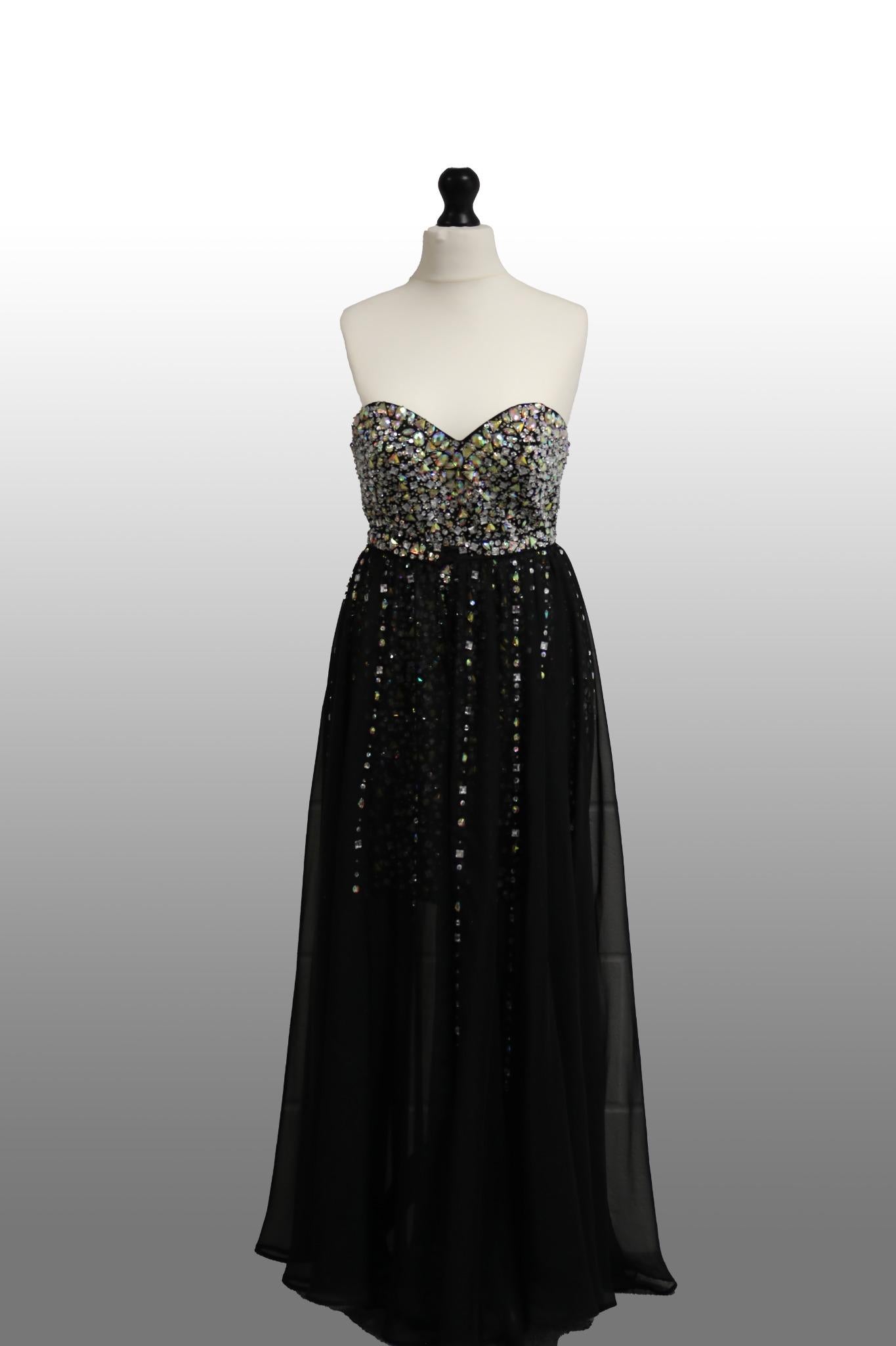 The Morilee Embellished Black 10 dress features elegant embellishments and a flattering cut. Crafted with precision and attention to detail, this dress is perfect for any formal occasion. Let the delicate intricacies and sophisticated design make you stand out in style.